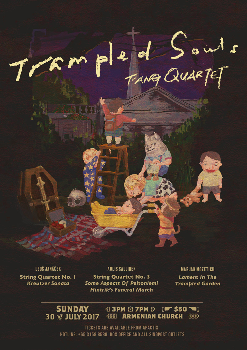 Trampled Souls showcases a diverse combination of styles, ranging from sheer darkness to fantasy to quirkiness. The common theme of darkness, albeit in varying forms, running through the pieces gives rise to the album title. It reflects the Quartet's perspective of works that have shaped them over the years, collectively and individually.